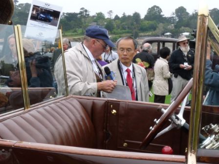 Many thanks to Brian Williams for traveling from the east coast to attend the Concours. Brian worked for and is friends with J. Parker Wickham, the car's previous owner. Brian delivered an impressive file of historical documents and glass plate photos of the car to us--very valuable additions to our library. More pictures to follow as soon as wilma get the camera downloaded.